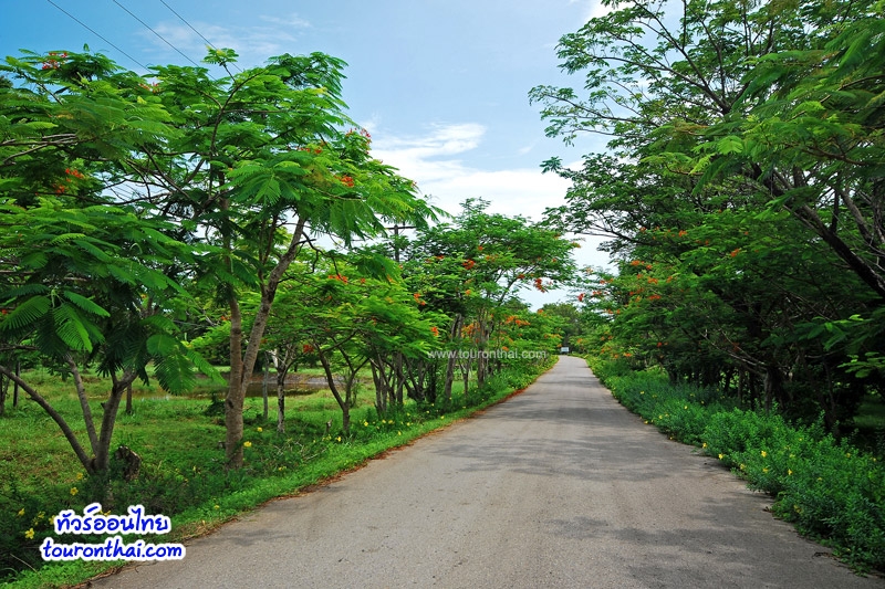 มีต้นไม้มากมาย ริมทางปลูกดอกไม้สวยๆ ตลอดทาง